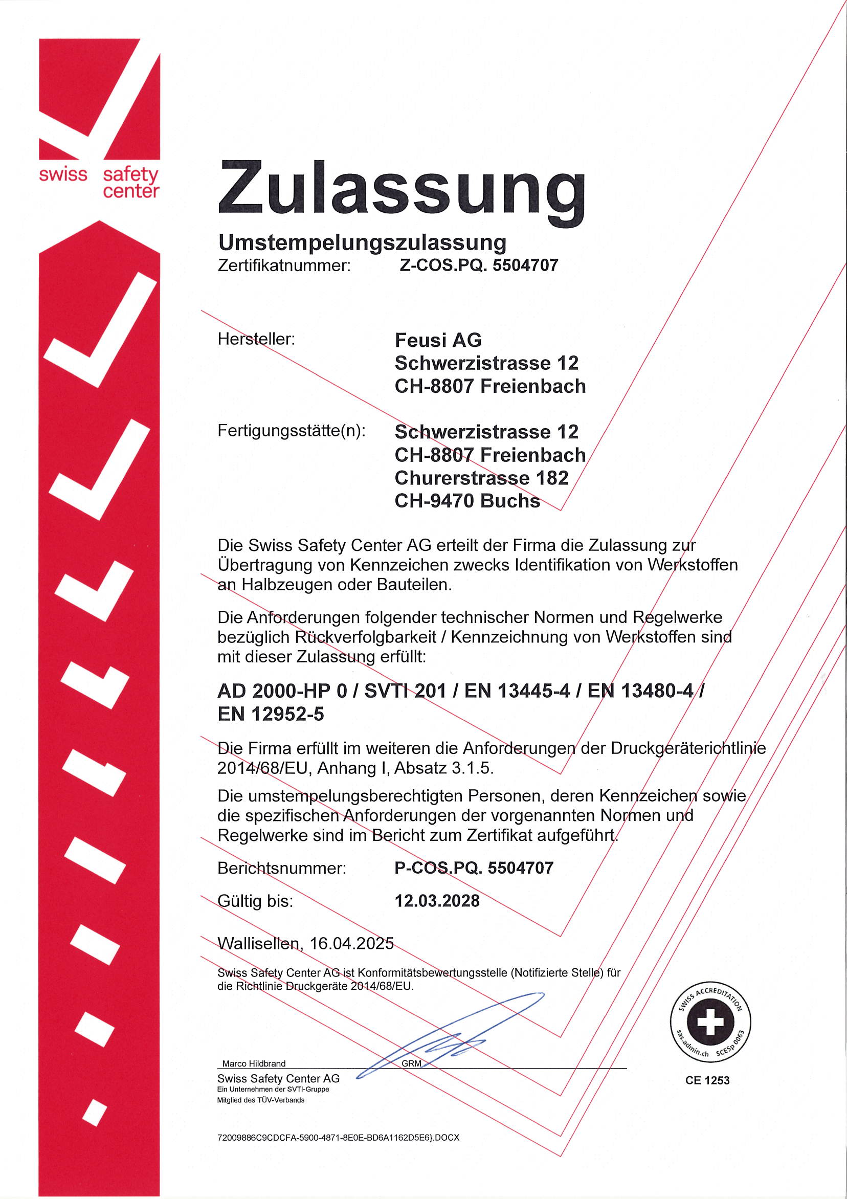 > Zulassung zur Umstempelung